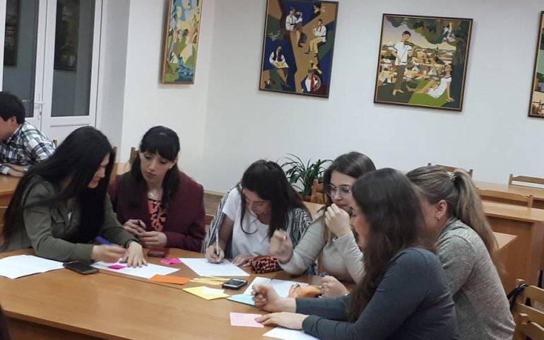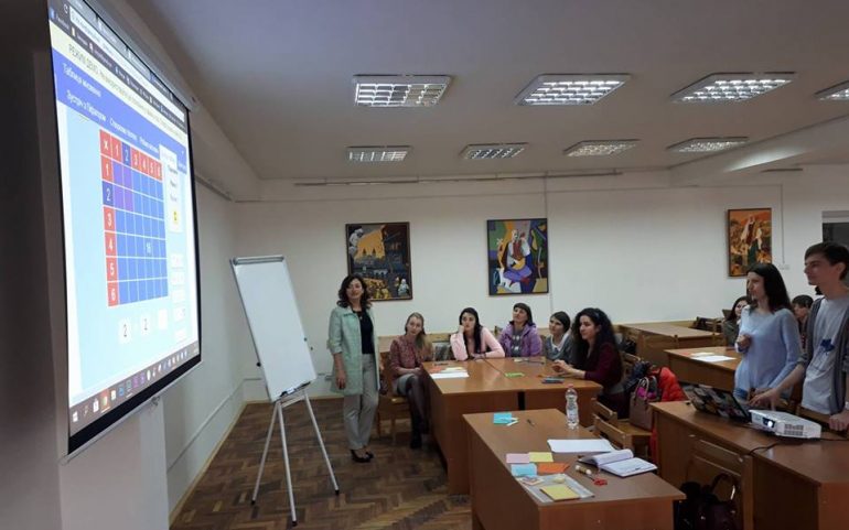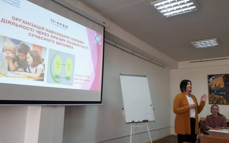 Керівник академічної групи проекту Олена Будник у своєму виступі ознайомила присутніх із основними завданнями та очікуваними результатами проекту, у загальних рисах окреслила інструменти електронного навчання, завдання щодо формування медіаграмотності у студентів університету та учнів загальноосвітньої школи та ін. З магістрантами спеціальності «Початкова освіта» проведено тренінг «Методика дослідницького STEAM-навчання у Новій українській школі», в ході якого продемонструвано створені викладачами та магістрантами ПНУ в рамках окресленого проекту дослідницькі середовища українською мовою (http://www.golabz.eu/spaces). Доцент Тетяна Близнюк виступила з презентацією на тему «Рекомендації щодо створення нових навчальних курсів через призму особистості сучасного студента» та провела тренінг, який мав на меті створення портрета особистості сучасного учня. Під час тренінгу магістранти й викладачі виявили свою креативність та оригінальність у командній роботі, під час представлення групових проектів було використано різні типи навчальної діяльності, обґрунтовано доцільність їх впровадження у практику професійної діяльності вчителя Нової української школи.
