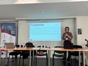 Начальниця відділу управління проєктами університету та менеджерка проєкту BOOSTSCIENCE доцентка Тетяна Солоджук зробила короткий огляд робочого пакету, у якому університет виступає координатором, а також представила підходи до забезпечення сталості результатів проєкту після завершення фінансування. Особлива увага приділялась питанням поширення результатів, комунікації зі стейкхолдерами та інтеграції напрацювань проєкту в освітню й управлінську практику університетів-партнерів.