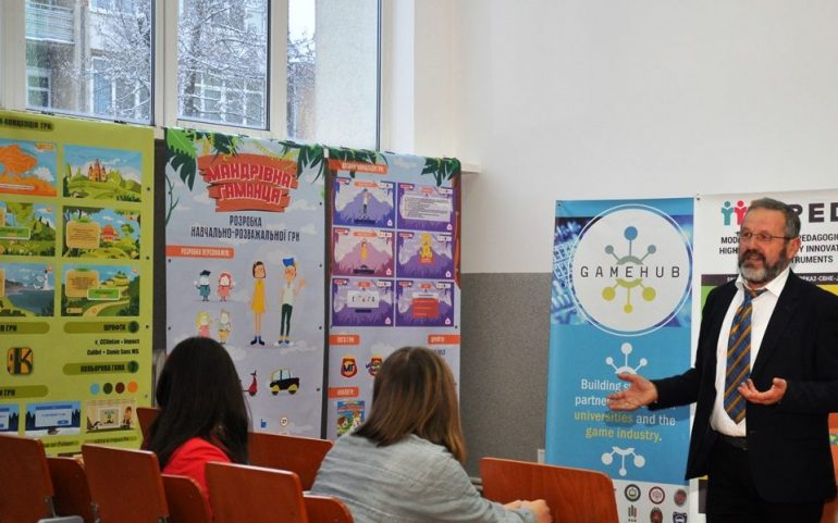 GameHub Project was introduced by Ph.D., Associate Professors of the Department of Computer Sciences and Information Systems Vitaliy Gorelov and Viktor Rovinsky. They drew attention to some problematic organizational issues that took place at various stages of work on diploma projects, in particular, in the process of creating a computer design of the educational game. They expressed the hope that the launch of such interdisciplinary scientific research will form the basis for the creation of appropriate educational programs in the direction of the international scientific projects Erasmus +, which are implemented at the university.